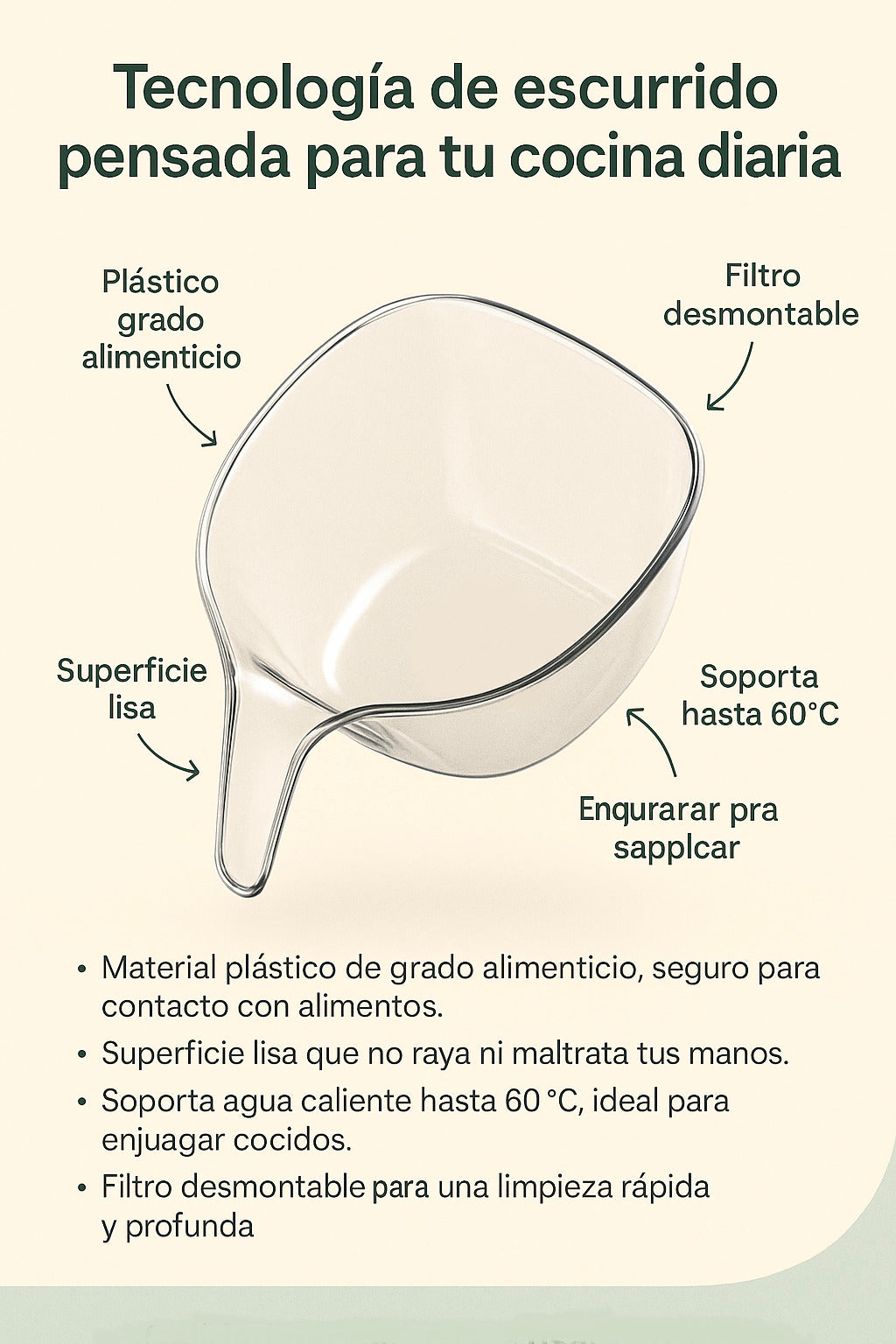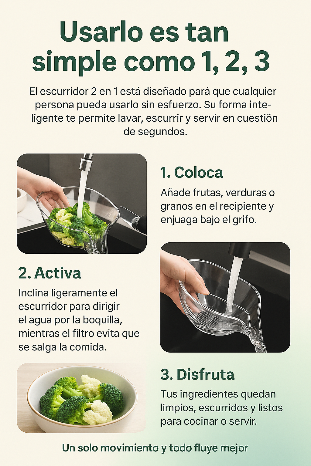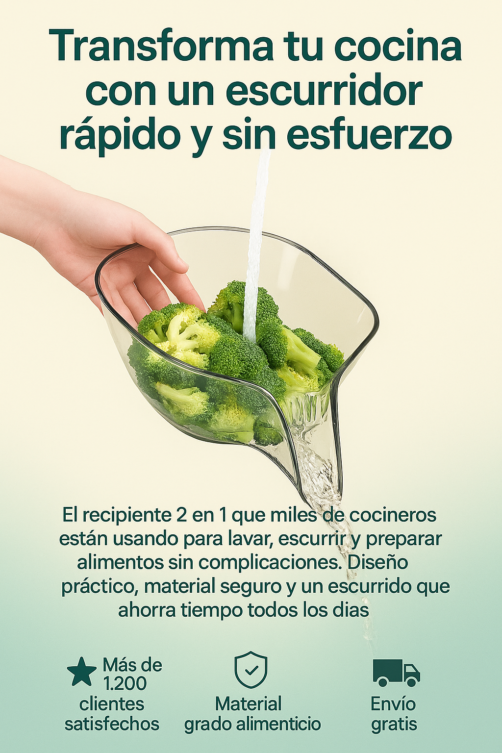 El recipiente 2 en 1 que miles de cocineros están usando para lavar, escurrir y preparar alimentos sin complicaciones.