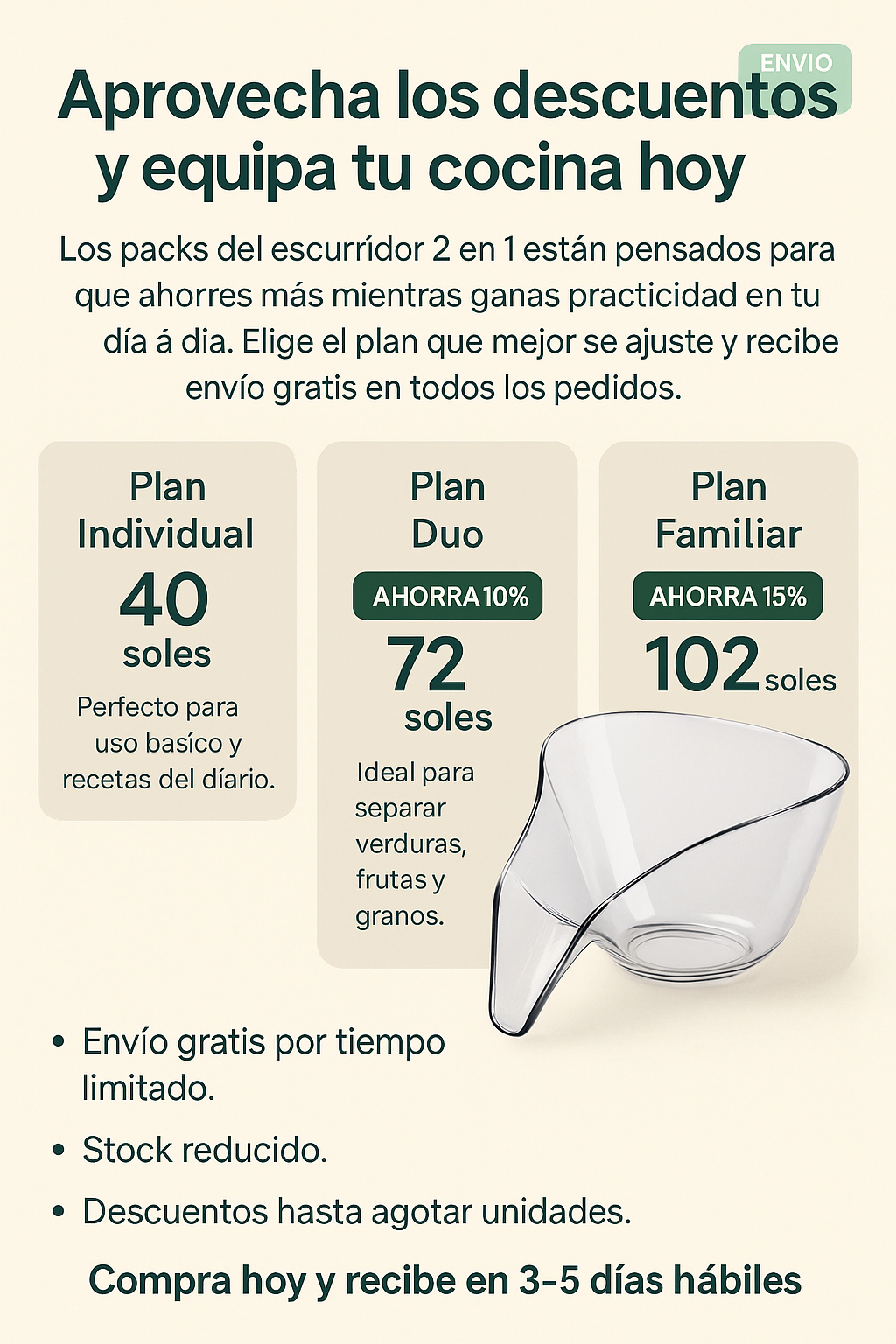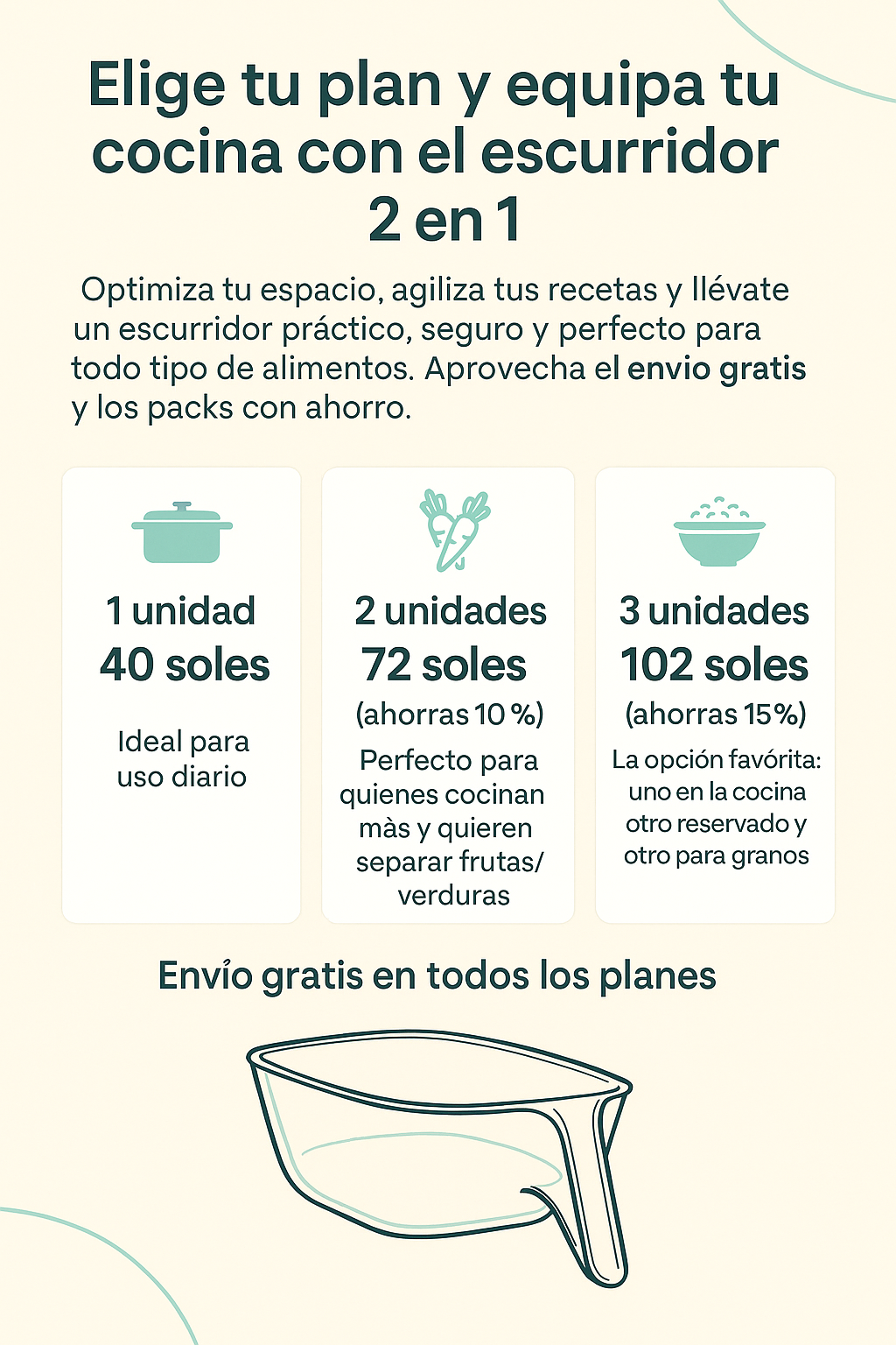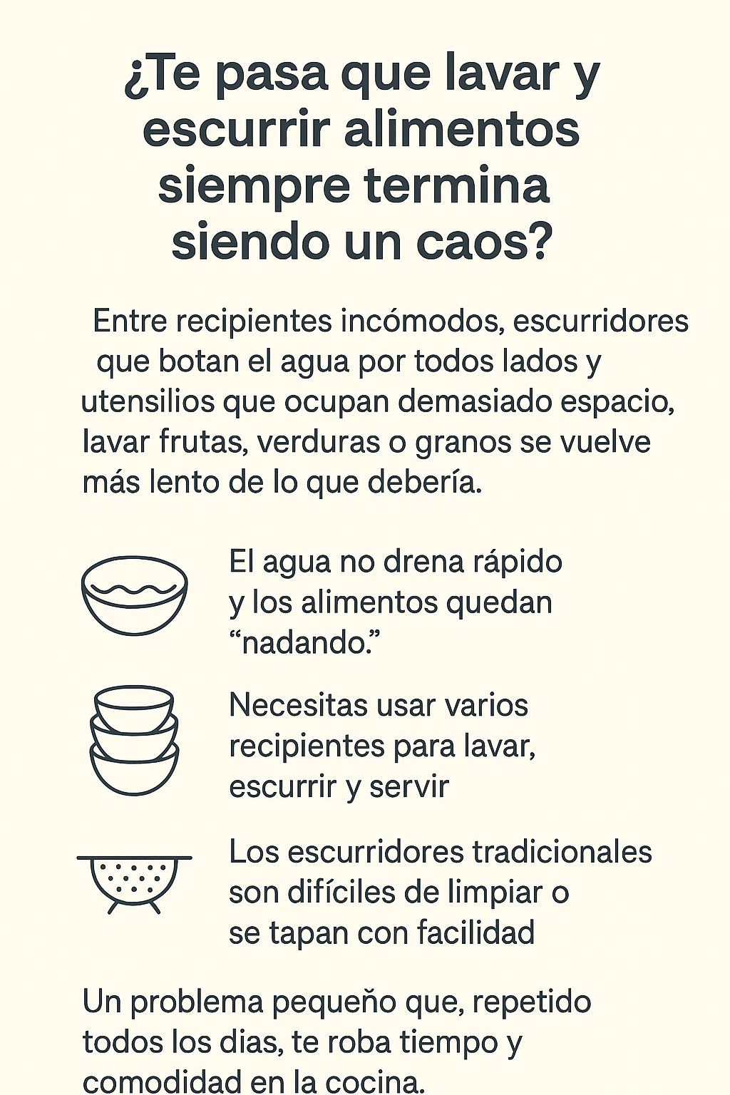Carolina, LimaEl recipiente 2 en 1 que miles de cocineros están usando para lavar, escurrir y preparar alimentos sin complicaciones.