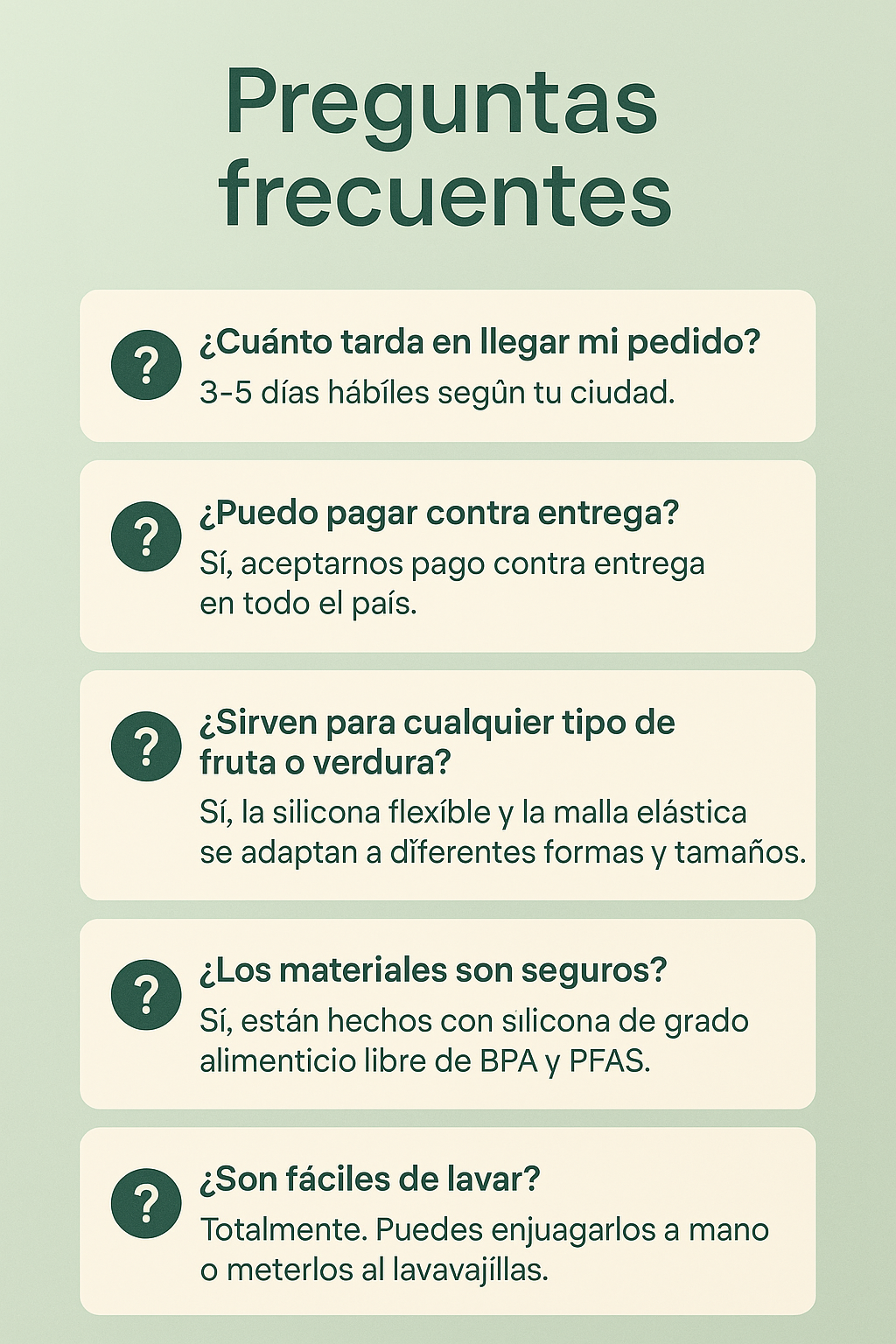 ✅ Fabricados con silicona de grado alimenticio libre de BPA y PFAS. Son resistentes, seguros y no alteran el sabor de tus alimentos. ¡Una solución duradera y saludable para tu día a día!